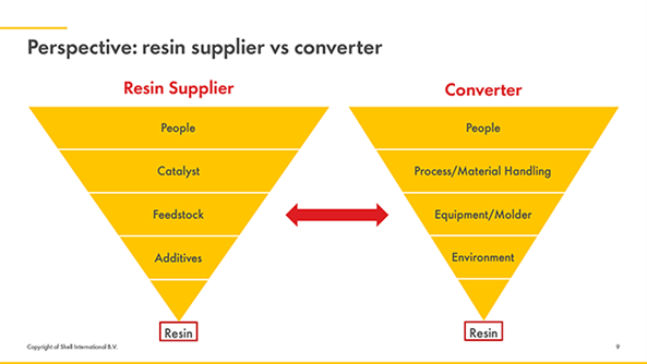 برگههای اطلاعات فنی (TDS) معمولاً تصویری کلی از مشخصات رزین ارائه میدهند، اما قادر به پیشبینی رفتار رزین در شرایط واقعی تولید نیستند. در یک مطالعه موردی توسط Shell Polymers، مشخص شد که شاخص مذاب اندازهگیریشده برای برخی رزینها، تفاوت قابلتوجهی با مقادیر مندرج در دیتاشیت دارد. بنابراین، آزمایش عملی و ارزیابی واقعی قبل از تغییر رزین، ضروری است.